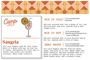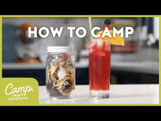 - Mocktail: Fill your Sangria Camp Kit with hot water, shake, and allow it to cool. Makes eight zero proof cocktails. Add a strained 1.5 oz shot to a glass of crushed ice and top with a citrus based bubbly water. Add a reusable straw.