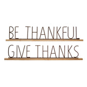 Our Fall mantel signs are crafted from aged, antiqued metal with a decorative design, and are available in two styles, "Be Thankful" or "Give Thanks".