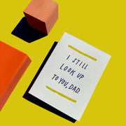 Show your appreciation with our Still Look Up to You Dad Card. No frills, just a heartfelt message for Father's Day or any occasion. Let him know how much he means to you in a fun, playful way.