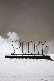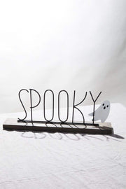 Spook up any room with this "Peeking Ghost Sign"! Its metal frame and wooden base make for an eerie design, while the eye-catching spooky phrase will surely have guests watching their back! Add some spookiness to your home today!