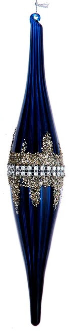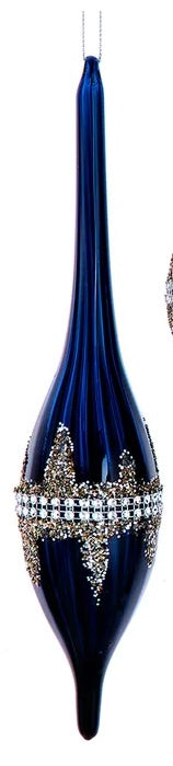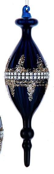 Add a touch of glamour to your holiday decor with our Midnight Blue Finial Ornaments. These deep blue drop ornaments feature a sparkling rhinestone band and a mix of silver and gold glitter for a stunning and festive look. Available in 3 shapes sold separately.