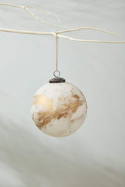 Capture the spirit of the season with the Wonderous Ornament, a glass orb with a metal cap to hang from. These matte white and gold Christmas ornaments are each uniquely marbled. Layered in with lights, the Wonderous Ornaments cast a festive glow.