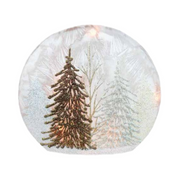 Light up your space with our Winter Wonderland Small Orb. This circular vase features a festive light strand inside, illuminating the gold, silver, and copper glittery tree design. The etched glass adds a touch of elegance to this fun and quirky decoration. (Don't wait, it's selling like hotcakes!)
