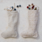 Add a touch of elegance to your holiday decor with our Woven Gold Thread Stocking. Made from high-quality material, this stocking features intricate weaving of shiny gold thread in both directions, adding a shimmering touch to your mantle. Simple yet stylish, it's the perfect addition to your festive celebrations.