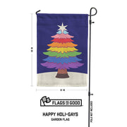 Celebrate the most wonderful time of the year with our vibrant, inclusive Happy Holigays Garden Flag. Featuring a peaceful holiday design with a fun, rainbow-hued tree, this flag is perfect for adding some LGBTQ+ Pride spirit to your festive season. Pole pocket included - it's sure to brighten up your holiday décor!