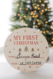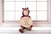 Capture your little one's first holiday memories with Pearhead's My First Christmas Wooden Photo Prop Sign! This adorable and customizable sign, complete with snowflakes and pine trees, is the perfect addition to your baby's Christmas photos. Use the included sawtooth hanger and pen to make it truly unique and cherish it for years to come. This gender-neutral sign also makes for a great gift for expecting mothers, parents, or a special addition to any baby shower registry.