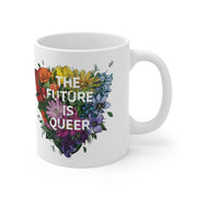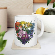 This queer 🌈 ceramic mug is dishwasher and microwave safe, adorned with a gorgeous 🌸 floral illustration and artistically illustrated by the talented Rae Senarighi!