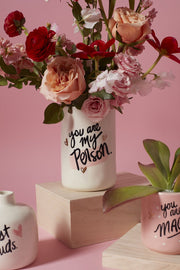 A delightful, giftable piece made from stoneware clay, the Sweet Phrase pot features a warm, hand painted reminder on top of a matte white glaze with gold & pink detailing. Pair with a drop-in plant or bunch of roses for the perfect Valentines gift.