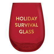 Enjoy holiday with with our 20oz Stemless Wine Glass featuring gold foil print "Holiday Survival Glass"