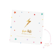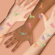 Ready to party dino style? We've got the perfect thing! 25 metallic temporary tattoos of 5 fun and far-out dino-inspired designs are here to jazz up your vacation, school day, special celebrating, dress-up playtime, and all the other stuff in between. Fun Tats by Flash Tattoos - created with love and the best ingredients around - are whimsically magical and modern, ready to bring a smile to your little one's face. Set up a Flash Tat application station for birthdays, stuff party favor bags, decorate with dino flair - you name it! Or opt for tattoo Easter eggs, V-day gifts, Halloween treats, and stocking stuffers. We know: limitless possibilities FTW! 🦖💚