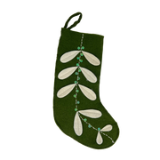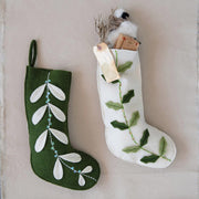 It's that time of the year again. To bring in the Christmas Spirit, our handmade felt stockings with holly appliqué and sequins are sure to do the trick. Each stocking is lovingly made with green or ivory felt, coordinating felt appliqué featuring playful leaves, and accented with a combination of thread accents for a unique merging of textures. Get in on their design and start creating your own holiday legacy!