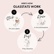 Our dissolvable drink markers stick on any glass and dissolve under warm water or in the dishwasher.