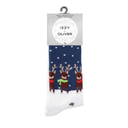 Our Christmas Socks will make your feet festive for the whole season! Features a snowy scene with Reindeers running through the snow. Celebrate the winter and holidays with these fun over the ankle designs.