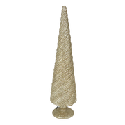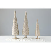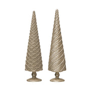 These embossed resin cone tree figurines with champagne finish can be the perfect addition to this season's holiday decor. Place on a table next to miniature buildings or mingle with a selection of animal figurines. Create an amazing centerpiece by placing on a table and surrounding with miniature packages wrapped in Christmas paper.