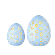 Brighten up your Easter decor with these lit Egg lanterns. Battery operated so you can place them anywhere, the porcelain eggs have a delicate pattern to allow the light to shine through. Includes 3 Lr44 Batteries in each egg. Choose from 3 colors and 2 sizes.