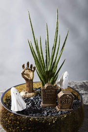 Halloween just got spookier with a terrarium full of Bone Yard Figurines! These cemetery-inspired figurines are perfect for those who want to add a creepy touch to their decor. With the Boneyard collection, you can reanimate your terrarium into a graveyard of the undead!