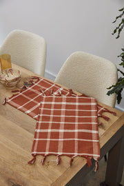 Give your table settings a rustic cottage feel with the woven cotton rectangular Camino Placemat (each sold separately). Featuring a warm brown & cream grid pattern with tassels on either end, this placemat is a warm, earthy base for a place setting, as well as a pop of color for the table. Pair with the white placemat version or with the white or brown Camino Table Runner for a coordinated interior design look.