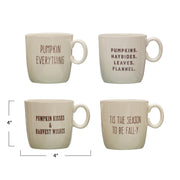 Get ready to cozy up with your favorite hot beverage in our Fall Sayings Mugs! These large stoneware mugs are perfect for enjoying your pumpkin spice lattes and apple cider with cute sayings like "Pumpkin Everything" and "Tis the Season to be Fall-y". Sold separately.