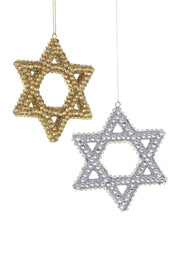 These simple, yet, sparkly Star of David ornaments are a great way to bring light into your home. Available in either gold or silver.