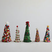 This handmade wool felt tree is sure to give your home a touch of Christmas cheer! Festive and fun, it rocks a cool bow and pom poms, all in a classic red and green colorway. Decorate like it's Yuletide year-round!