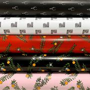 Choose between red or pink for our gorgeous Orange Blossom Wrapping Paper.  Featuring a stem of orange leaves, blossoms, and fruit on solid background, it's a hint of whimsy for your gift wrapping pleasure.