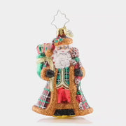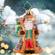 Santa is looking posh in a plaid, fur-trimmed coat. He'll be cozy warm as he walks through the snowy woods of North Pole. Handmade in Europe!