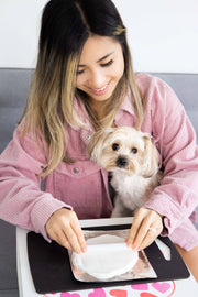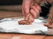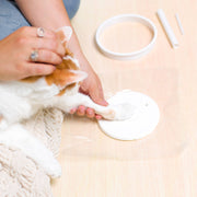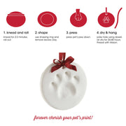 Easily create a unique keepsake for your furry companion with Pearhead's Pawprints Ornament! This must-have pet accessory is 100% safe for your dog or cat. Say goodbye to messes and fuss - no mixing, no baking, just fun! The package includes all you need: plastic shaping ring, air-drying clay, rolling pin, hole punch, and a red grosgrain ribbon. Simply knead the clay, roll it out, press your pet's paw gently, cut the print with the ring, add a ribbon hole and voila! Remove the excess clay for a perfect pawprint ornament.
