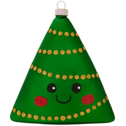 This triangular tree is celebrating Christmas with gold tinsel and a cute smile!