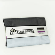 Asexual Pride flag with grommets and double stitched edges to reduce fraying.