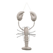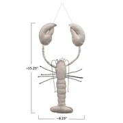 This artistically crafted, handmade recycled cream canvas and wire hanging lobster is a delight. The detailed craftsmanship makes this lobster a cute and fun accent for any kitchen, dining room, or any nautical inspired themed room.
