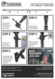 • The pole breaks down into five pieces so it's easy to break down and take to your local protest, tailgate, or anywhere else.