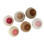 Get ready to add a touch of whimsy to your holiday decor with our Felted Boob Ornaments! These soft and playful ornaments come in many colors, making them the perfect addition to any tree. These unique ornaments are sure to bring a smile to your face and a fun twist to your festivities.