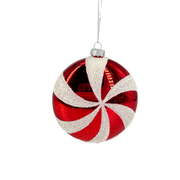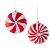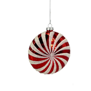 These red and white glass peppermint candy cane disc ornaments are a festive addition to your holiday décor or Christmas tree. You can select from either the large or small swirl design.