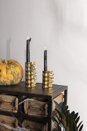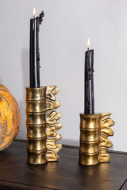 Bring a spine-tingling atmosphere to your home with our Lumbar Candle Holder, featuring a golden row of vertebrae! Choose from two fun sizes - perfect for those who want to make a bold or subtle statement. Highlight your spook-tacular style and set the mood tonight!