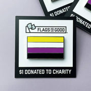 Size: This Nonbinary Pride Flag Hard Enamel Pin is 1.25 in x .75 in and has two studs with rubber backings to keep it secure on your bag, jacket, or wherever you rock it!