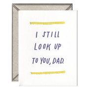 Show your appreciation with our Still Look Up to You Dad Card. No frills, just a heartfelt message for Father's Day or any occasion. Let him know how much he means to you in a fun, playful way.