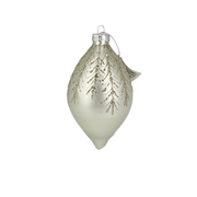 These silver and white glass ornaments from Kurt Adler are a elegant addition to your holiday décor or Christmas tree. Each onion and drop shaped ornament is beautifully decorated with a silver and white glittered pine leaf pattern.